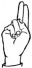 На ћирилици написано АНДРЕЈА МИЉУШ састоји се из 12 слова [?]. Исписано ћириличном једноручном азбуком за глувонеме: